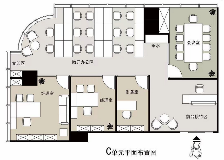 222㎡,使用率约70%,可容纳工位22~44个