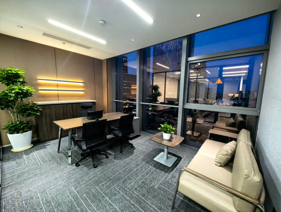 品牌办公家具、24h超级管家服务、共享会议室、路演厅、共享洽谈区、免费咖啡茶水、实体注册等服务。