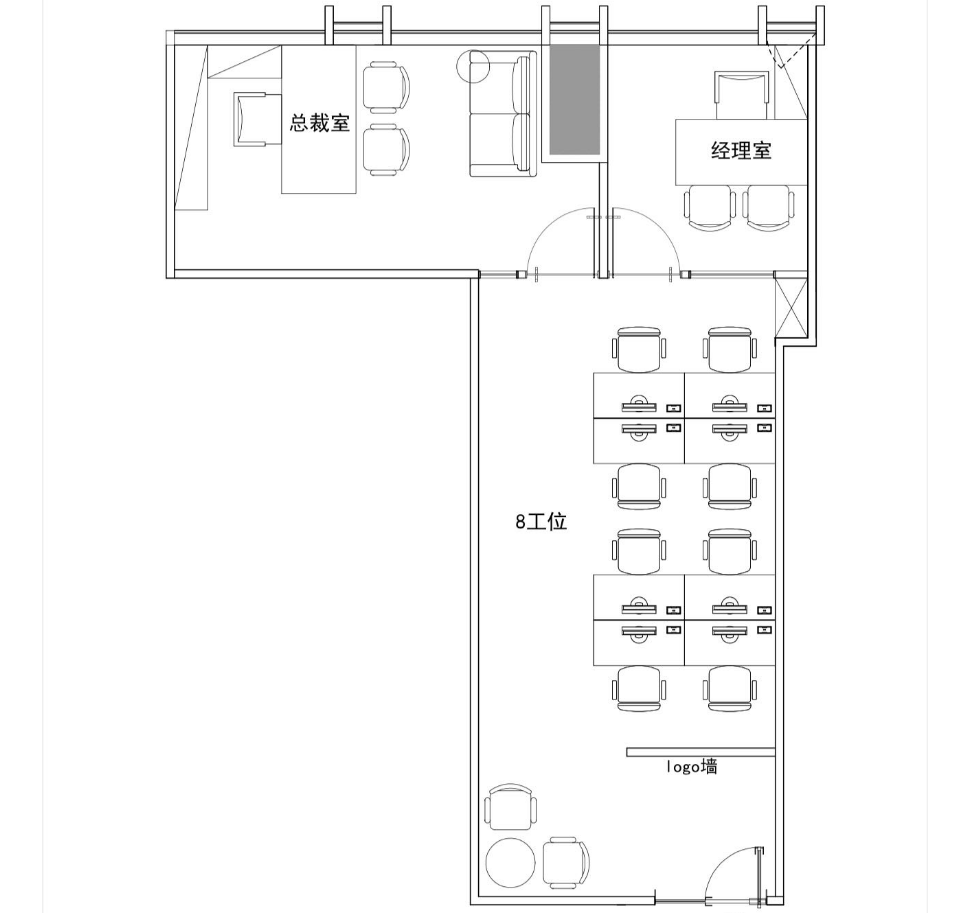 【功能布局】2隔断+8工位