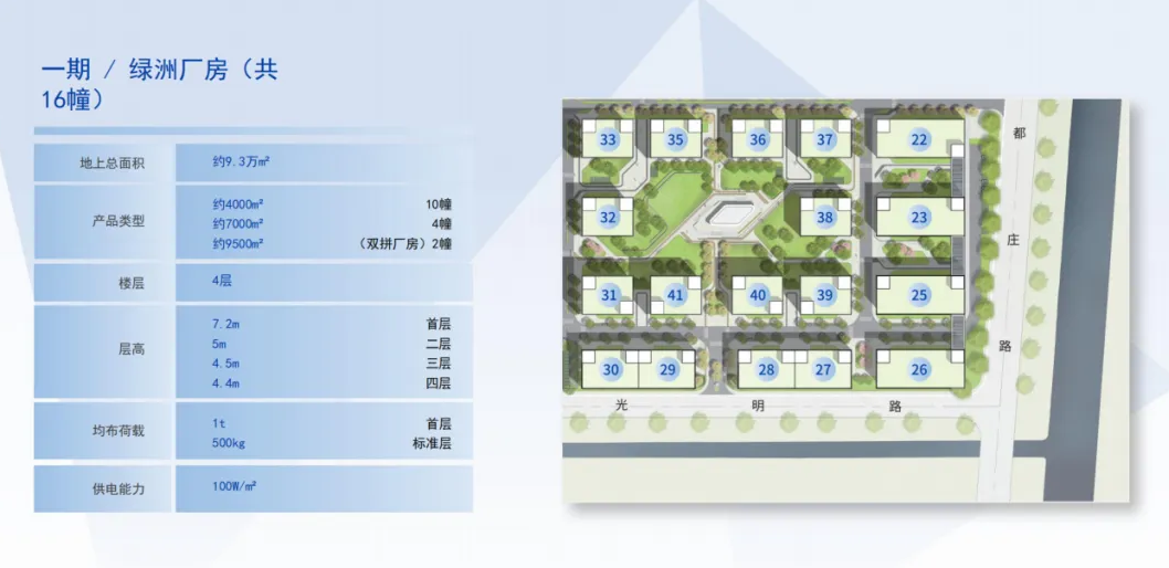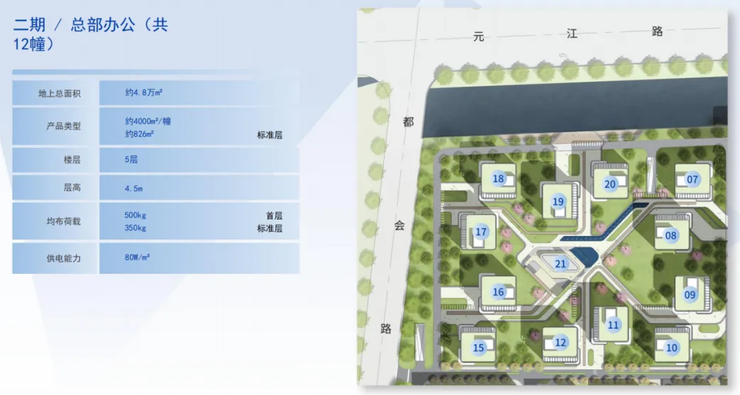 1~2号楼独栋超4w方,整层2500平米/小面积分割单元可选标准层层高4.4m,承重300-500kg