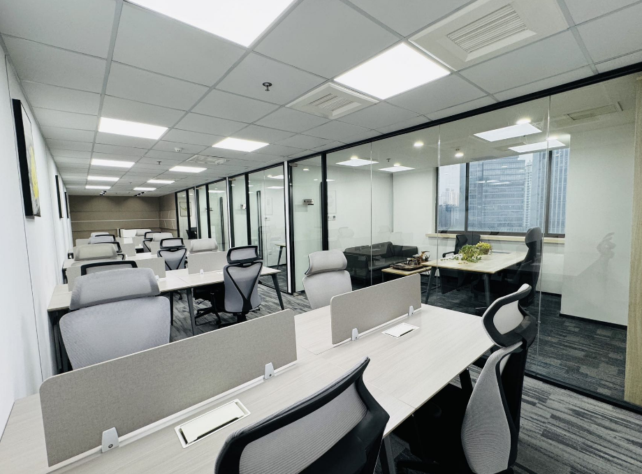 格局:前台+4隔间+18工位