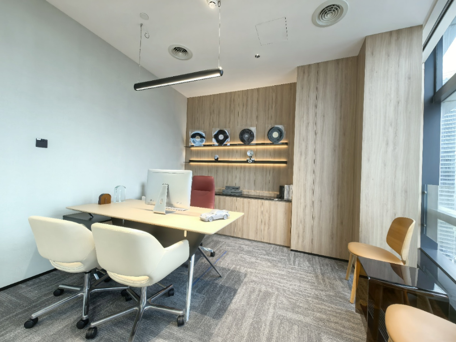 户内配置:精装修带家具、大理石logo墙、独立茶水台(无上下水)、冰箱、饮水机、弱电机柜、白板