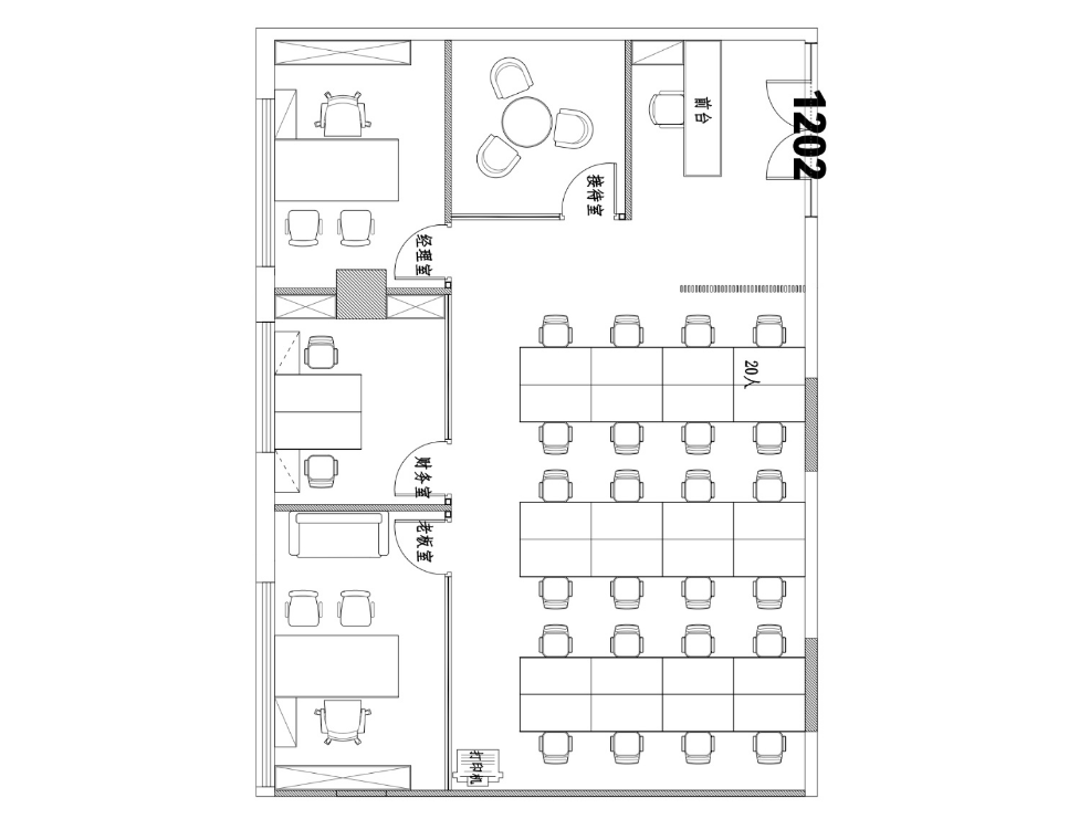 格局:前台+4隔断+24工位