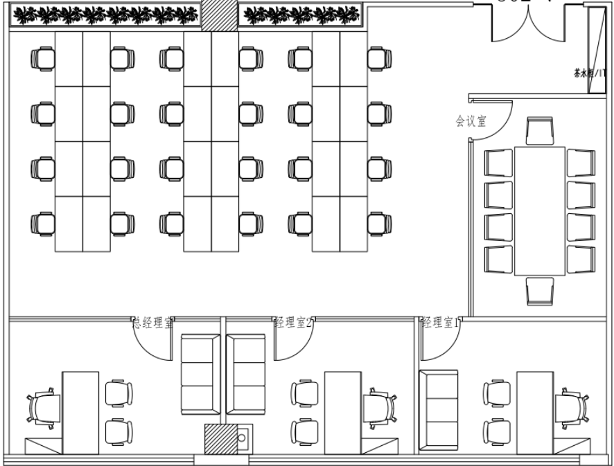 功能布局:logo墙+4隔间+24工位
